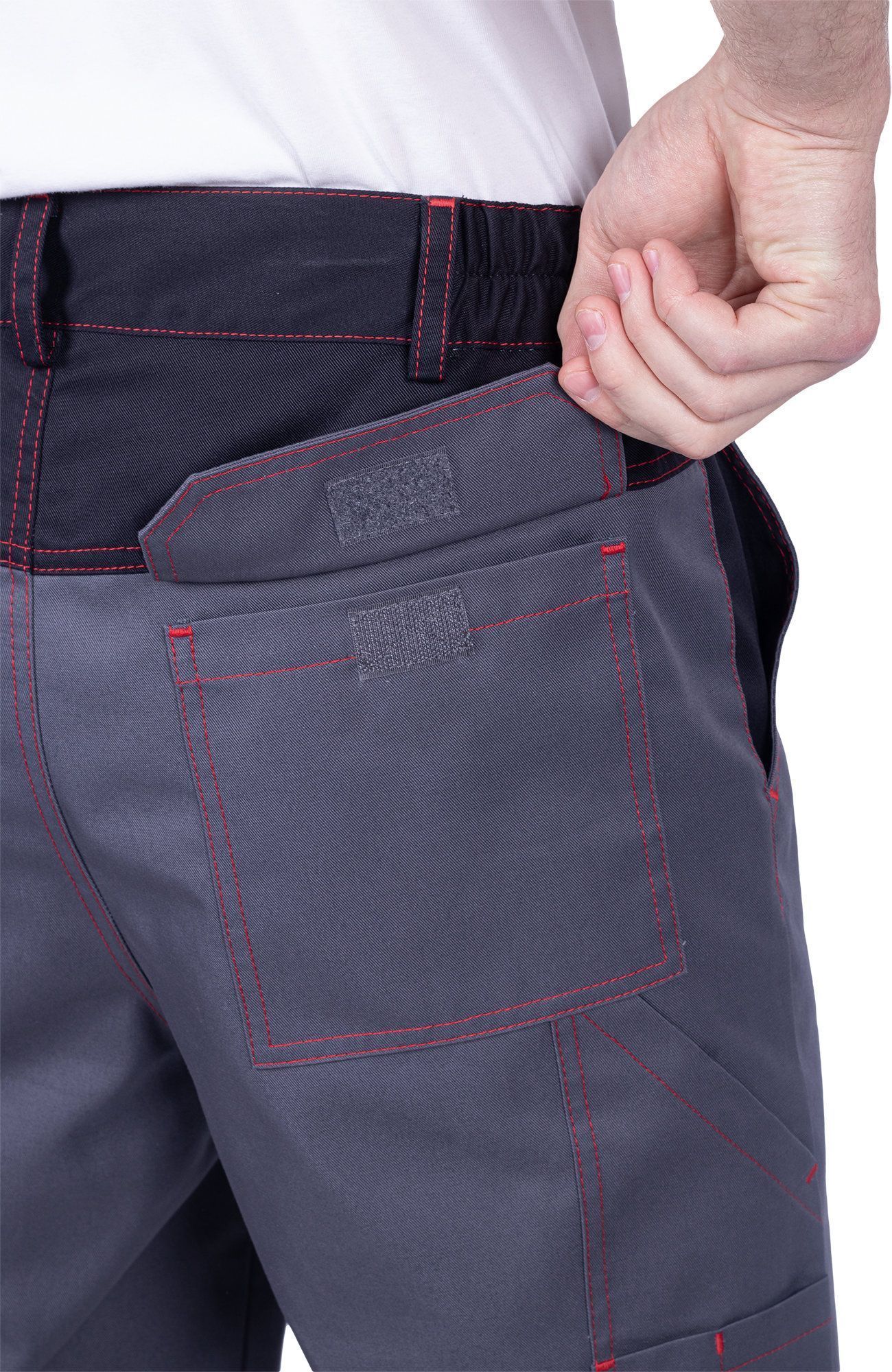 Брюки мужские летние "ХАЙ-ТЕК SAFETY" серый/черный/красный (ЧЗ)